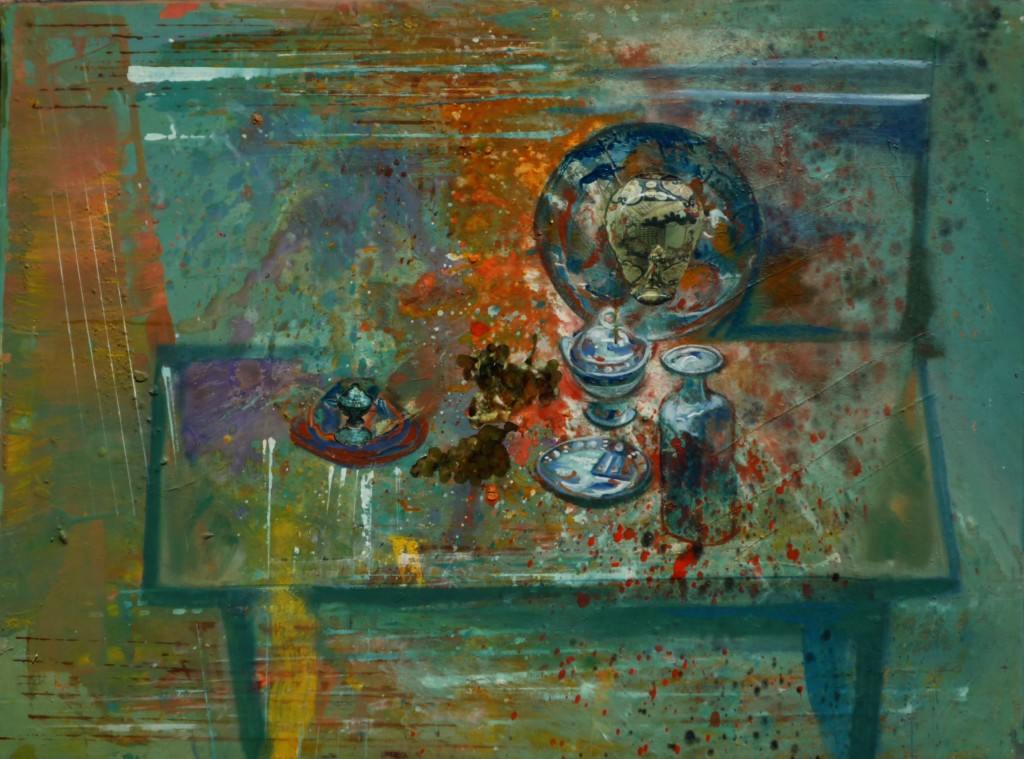 También en la pintura al óleo se pueden usar “recortes” de motivos para definir, con líneas cortantes, algún tema concreto en el que el sólo uso del pincel resulte “torpe”.