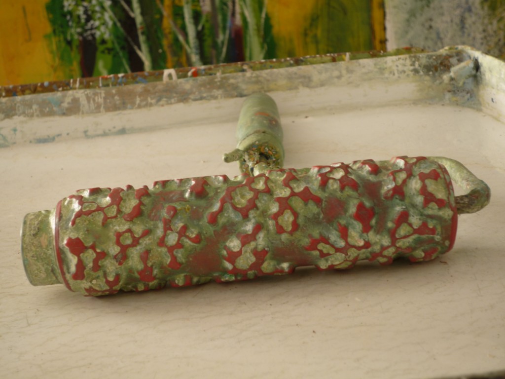 Con esto entramos en otro recurso muy usado que proporciona una huella uniforme y agradable a la superficie. Incluso se puede pintar un cuadro enteramente usando diferentes tamaños de rodillos y desde luego contando con gran número de ellos para la mezcla de colores.